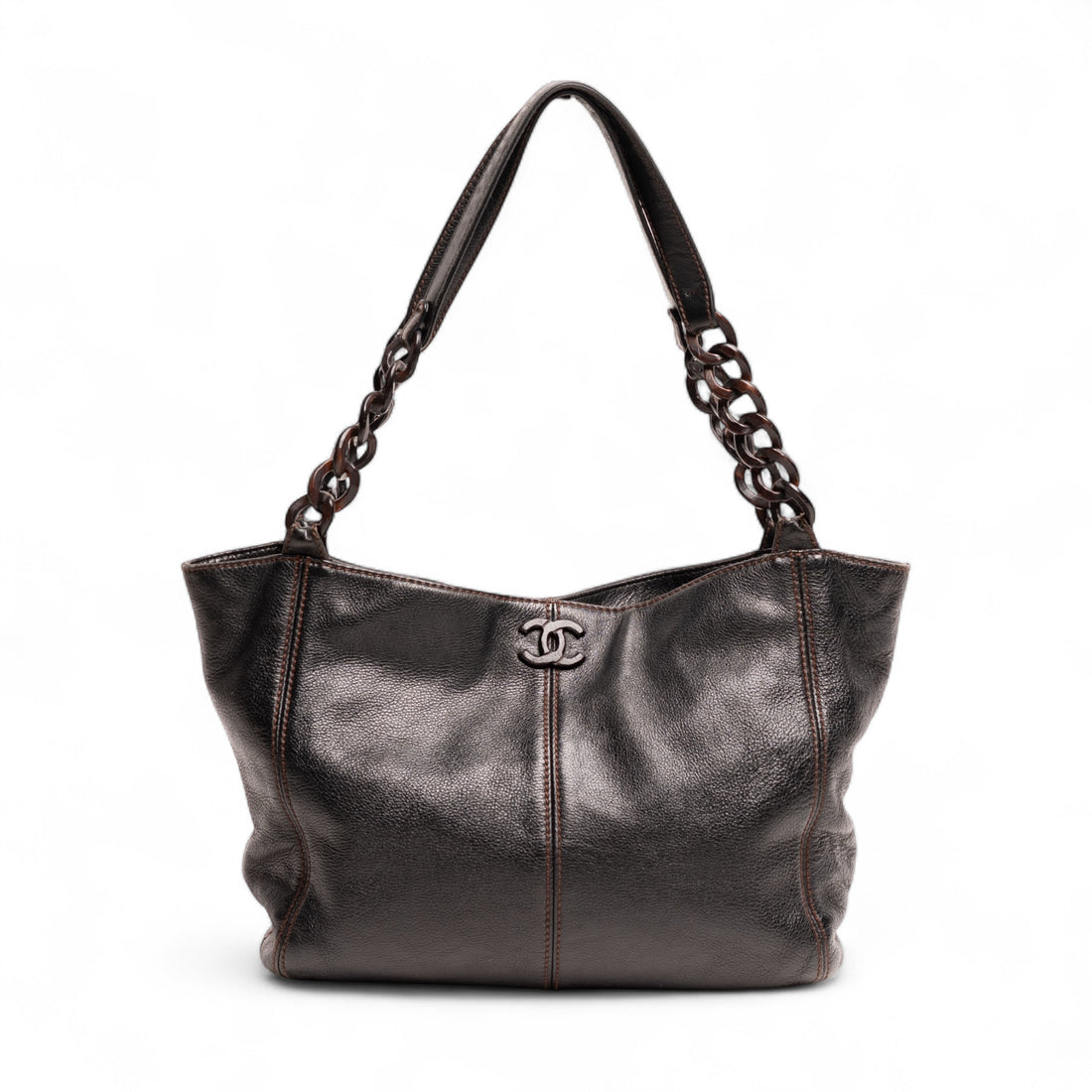 Authentic, Pre-owned Chanel Leather & Wooden Chain Handle Tote Bag
