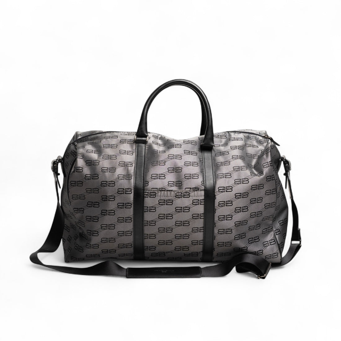 Authentic, Pre-owned Vintage Balenciaga Monogram Print Duffle Bag, Silver-gray
