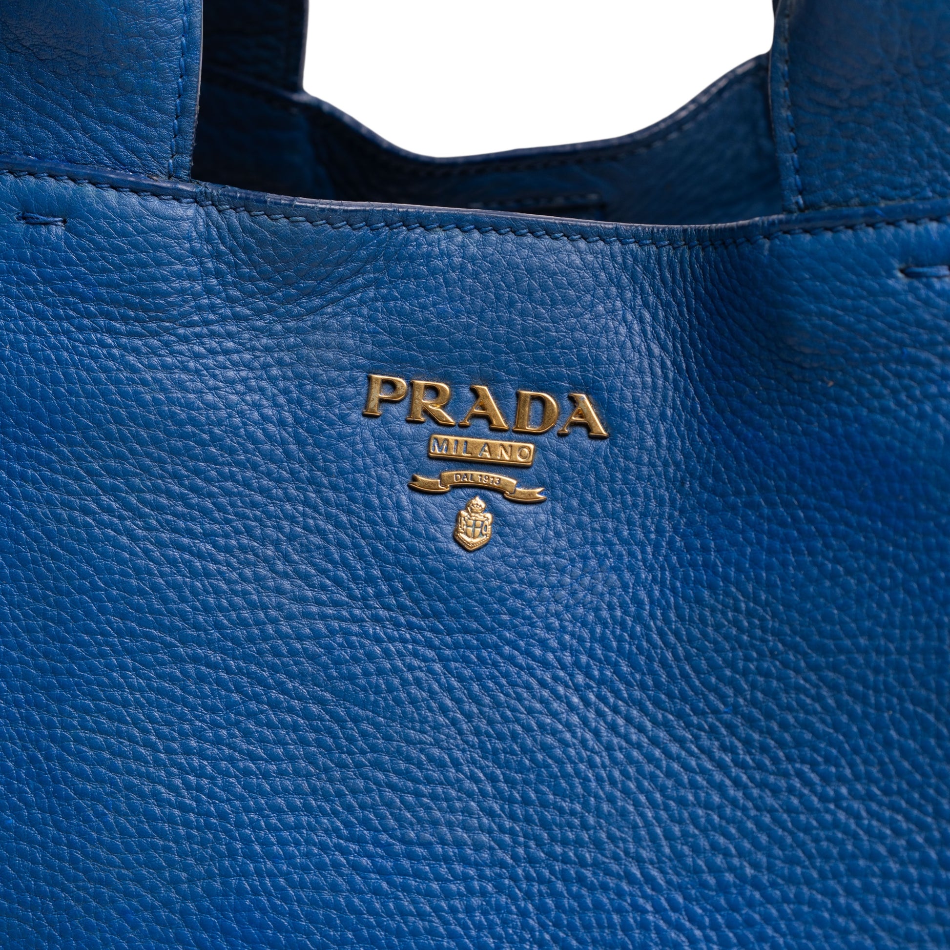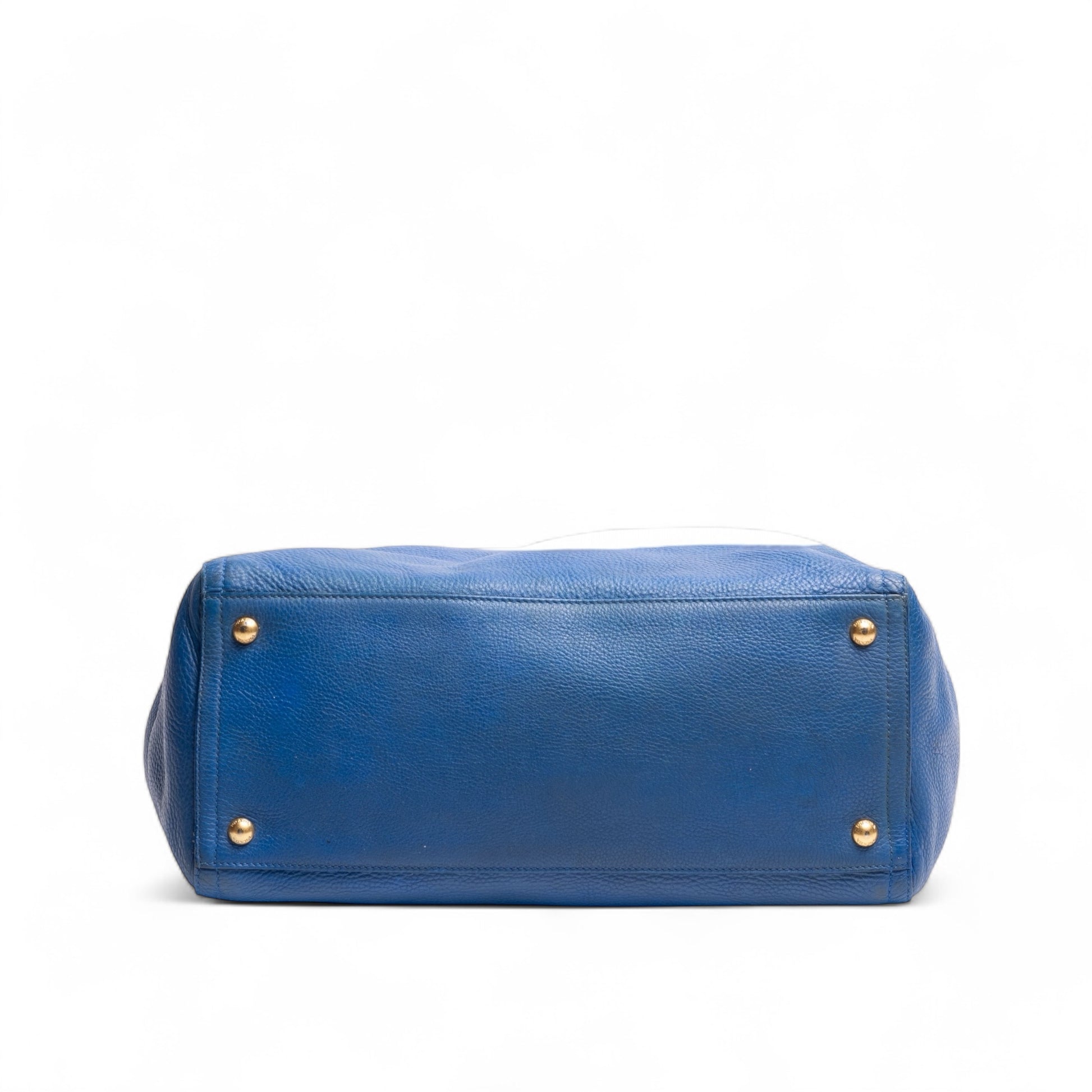 Auténtico bolso tote Vitello Daino en azul cobalto.