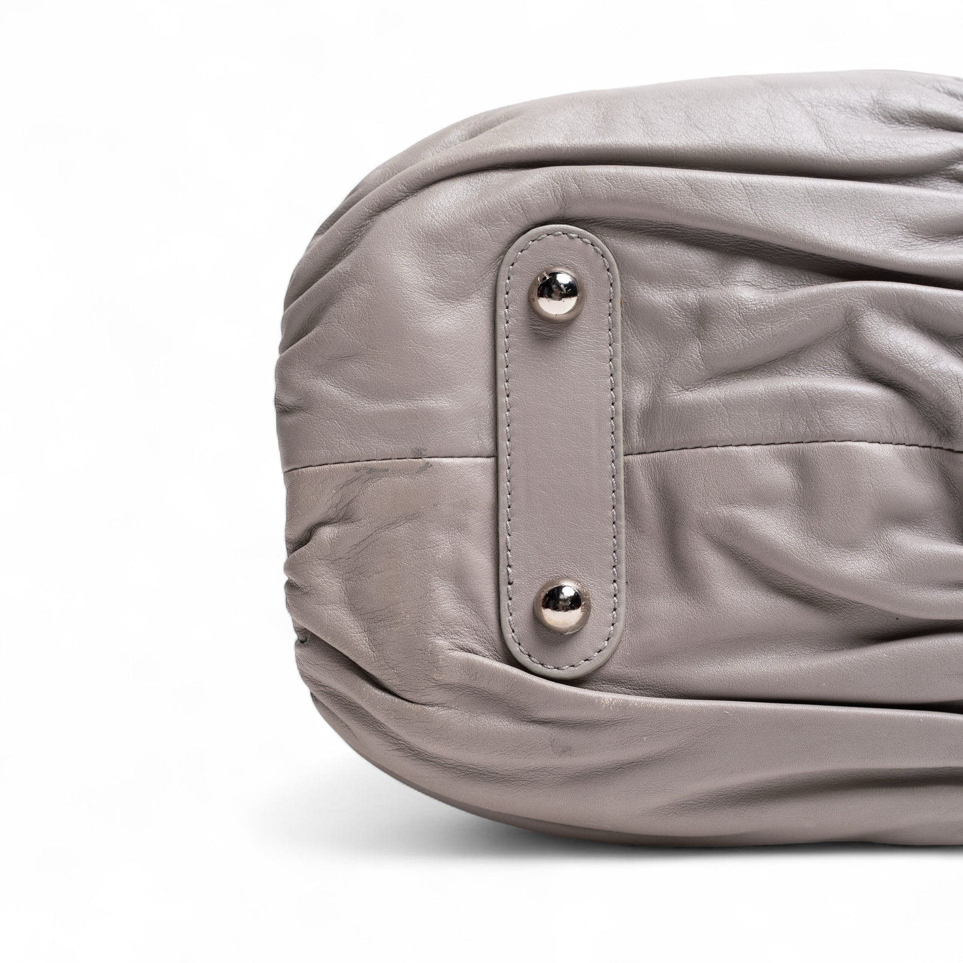 - Color: gray calfskin leather with silver hardware