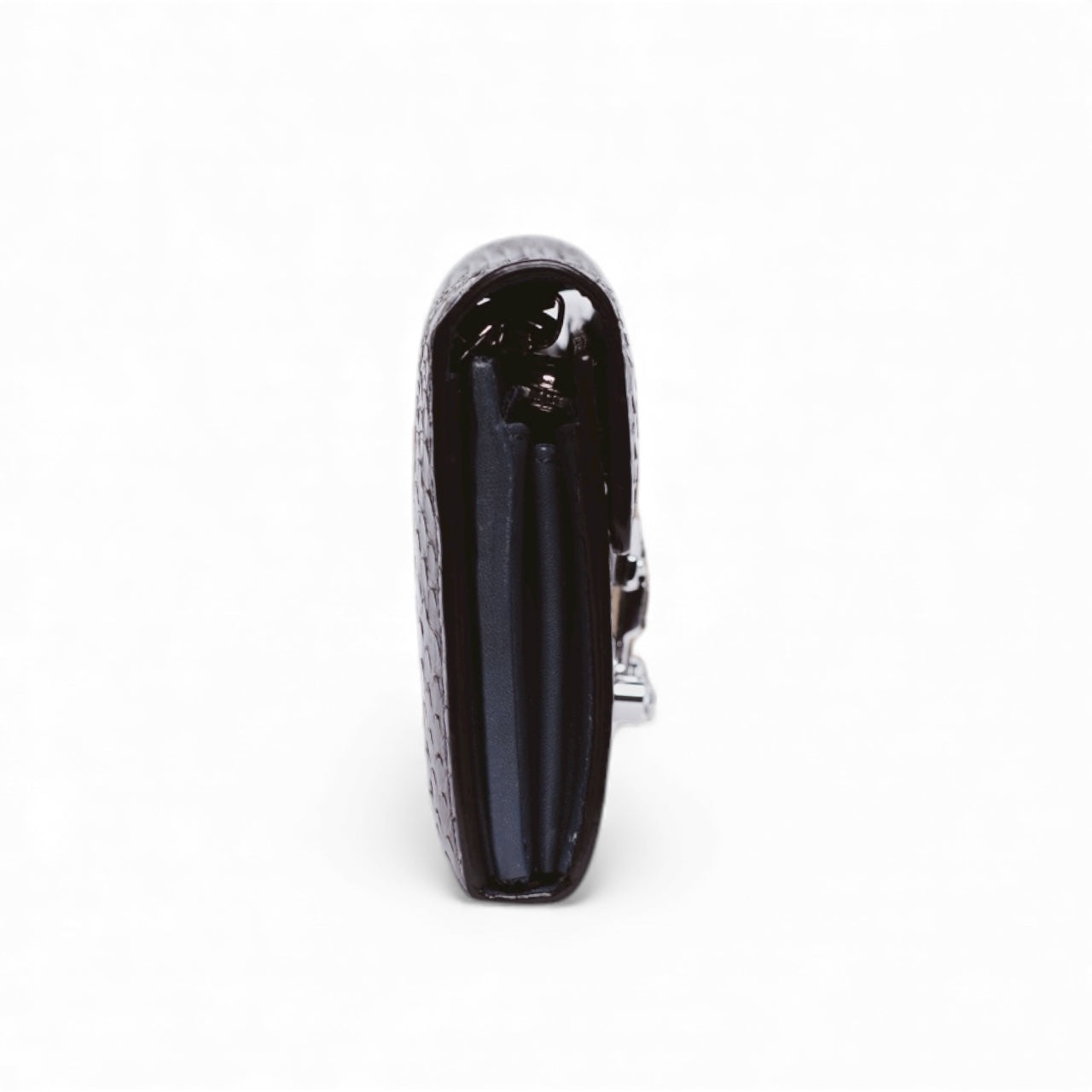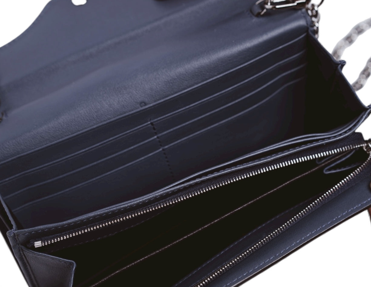 Discover the enduring appeal of this authentic, pre-owned Gucci Python Lady Lock Wallet on a Chain—a masterpiece of luxury craftsmanship featuring sumptuous blue and brown python leather paired with refined silver-tone hardware. The crystal-embellished push-lock closure delivers an elegant finishing touch, while the convertible silver chain strap grants you styling flexibility: transition seamlessly from crossbody wear to clutch-style carrying. Thoughtfully designed with 13 card slots, a dedicated coin compartment, bill storage, and space for a smartphone without a case, this wallet balances form with practical function. The harmonious marriage of exotic python skin and sparkling crystal details creates a sophisticated presence that transcends fleeting trends. An investment in timeless elegance, this piece maintains Gucci's signature structured refinement while offering the versatility and durability to become a cherished staple in your collection for decades.