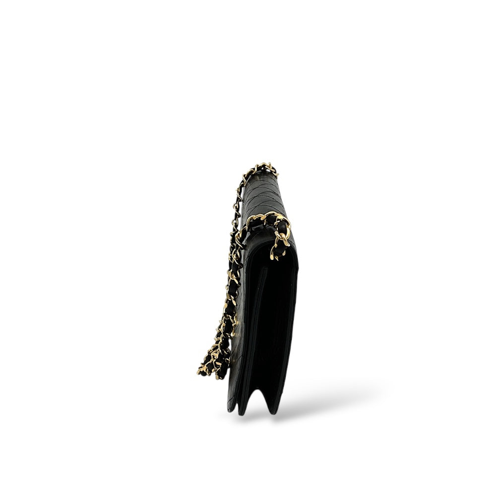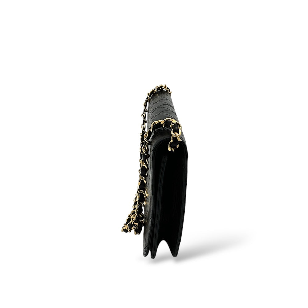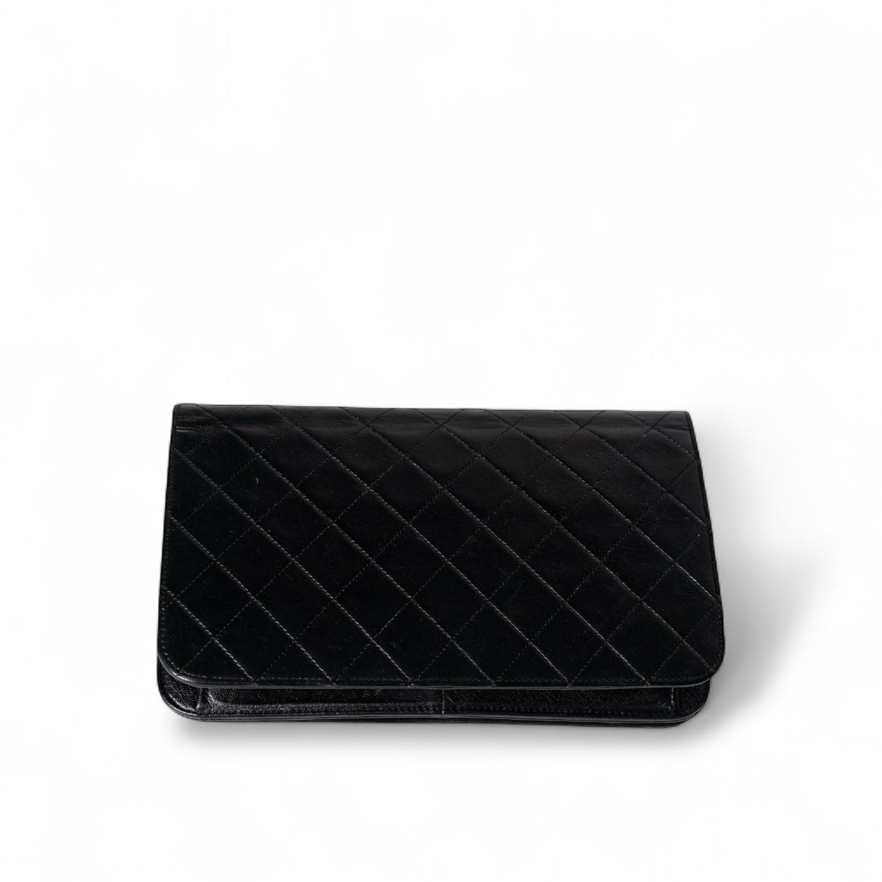 - Color: Diamond-quilted black lambskin leather, gold-tone hardware
