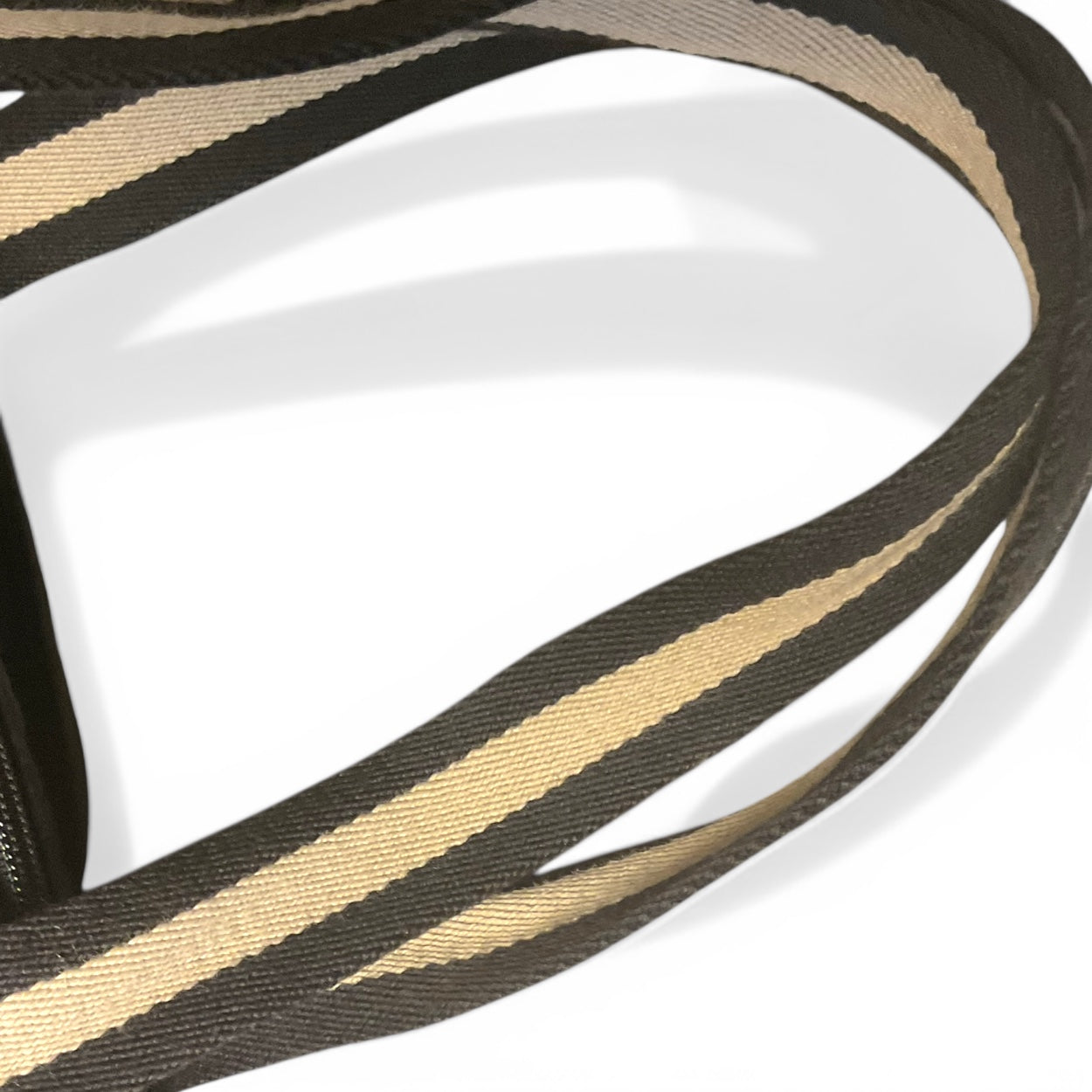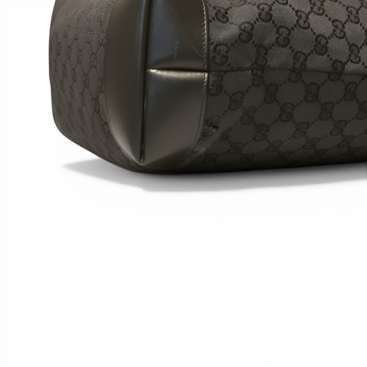 - Color: Black Gucci monogram “GG” print canvas with black and beige striped cloth double handles